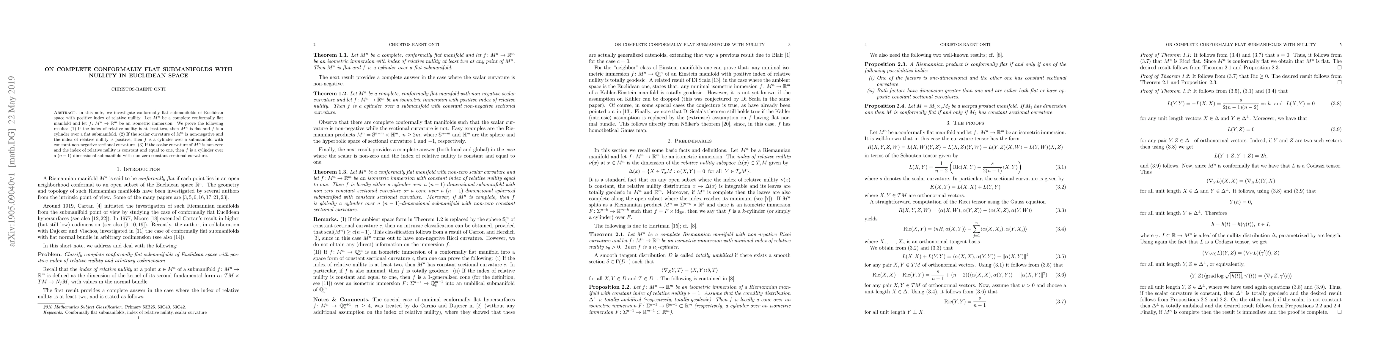 This paper explores complete conformally flat submanifolds in Euclidean space with positive relative nullity, proving that under certain conditions, these submanifolds are flat cylinders over lower-dimensional submanifolds with specific curvature properties.