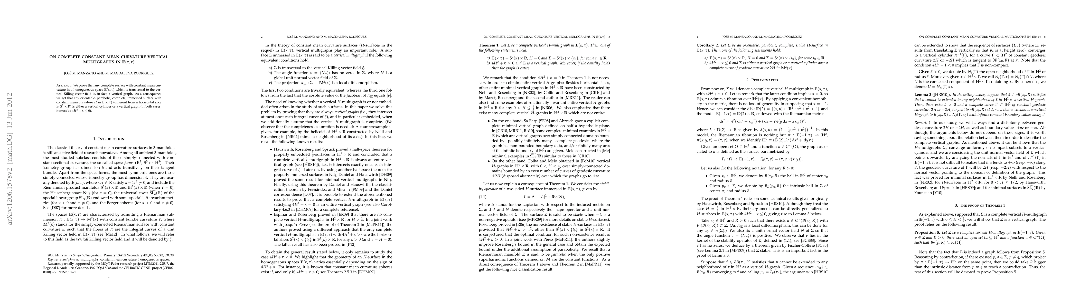 We prove that any complete surface with constant mean curvature in a homogeneous space E(\kappa,\tau) which is transversal to the vertical Killing vector field is, in fact, a vertical graph. As a consequence we get that any orientable, parabolic, complete, immersed surface with constant mean curvature H in E(\kappa,\tau) (different from a horizontal slice in S^2xR) is either a vertical cylinder or a vertical graph (in both cases, it must be 4H^2+\kappa\leq0).