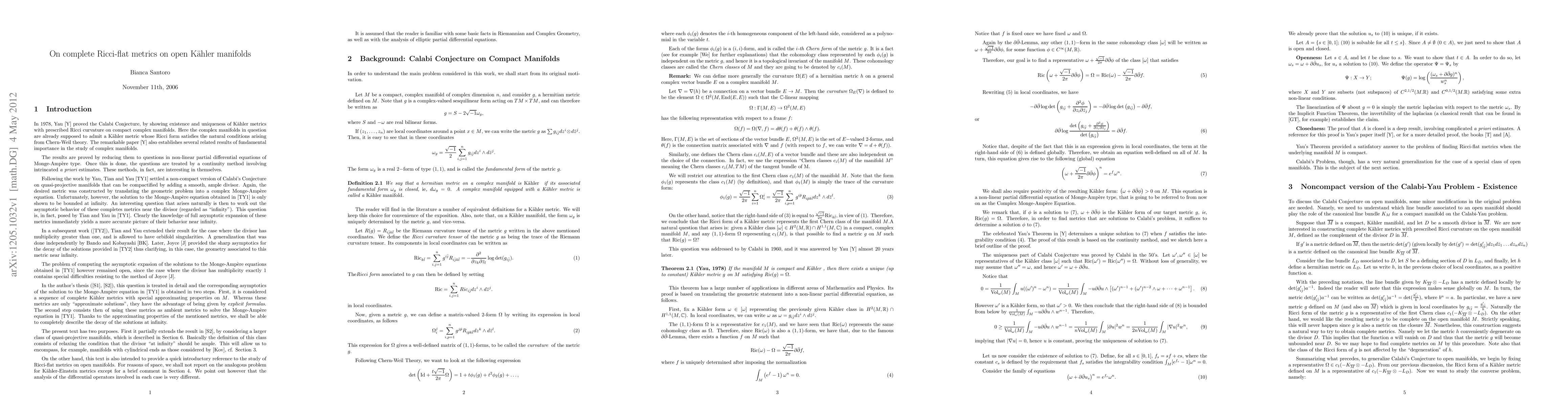 This paper extends previous results on the asymptotic expansion of Ricci-flat metrics, focusing on a broader class of quasi-projective manifolds, and offers a concise introduction to the study of Ricci-flat metrics on open Kähler manifolds.