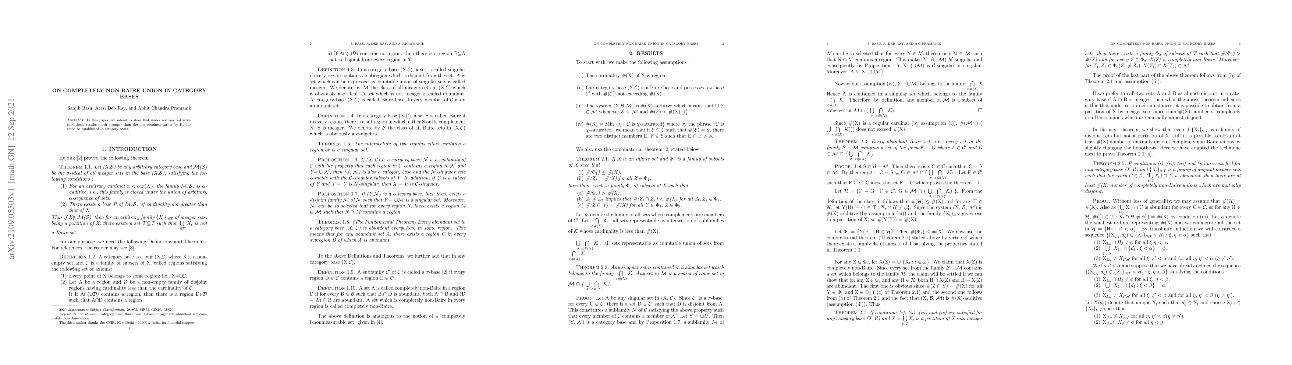 In this paper, we intend to show that under not too restrictive conditions, results much stronger than the one obtained earlier by Hejduk could be established in category bases.