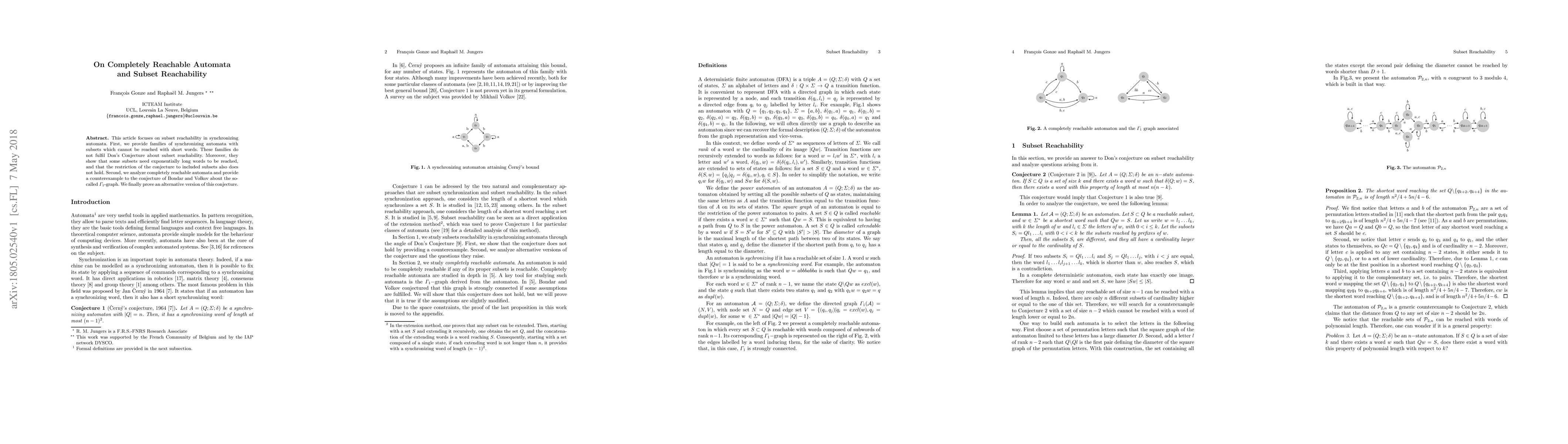 This paper explores subset reachability in synchronizing automata, presenting families where subsets require exponentially long words to reach, disproving Don's Conjecture. It also refutes Bondar and Volkov's conjecture on $\Gamma_1$-graph and proposes an alternative version of the conjecture.