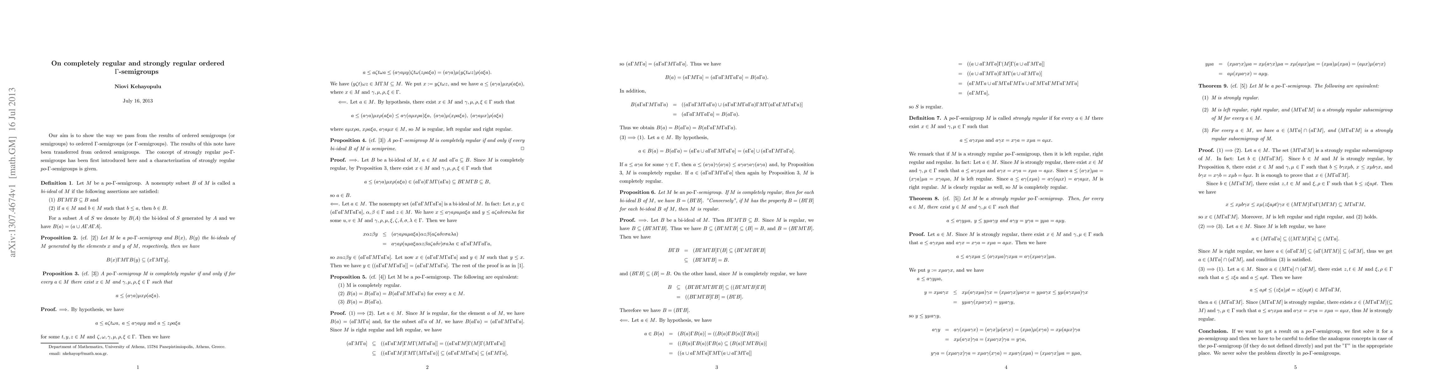 Our aim is to show the way we pass from the results of ordered semigroups (or semigroups) to ordered $\Gamma$-semigroups (or $\Gamma$-semigroups). The results of this note have been transferred from ordered semigroups. The concept of strongly regular $po$-$\Gamma$-semigroups has been first introduced here and a characterization of strongly regular $po$-$\Gamma$-semigroups is given.
