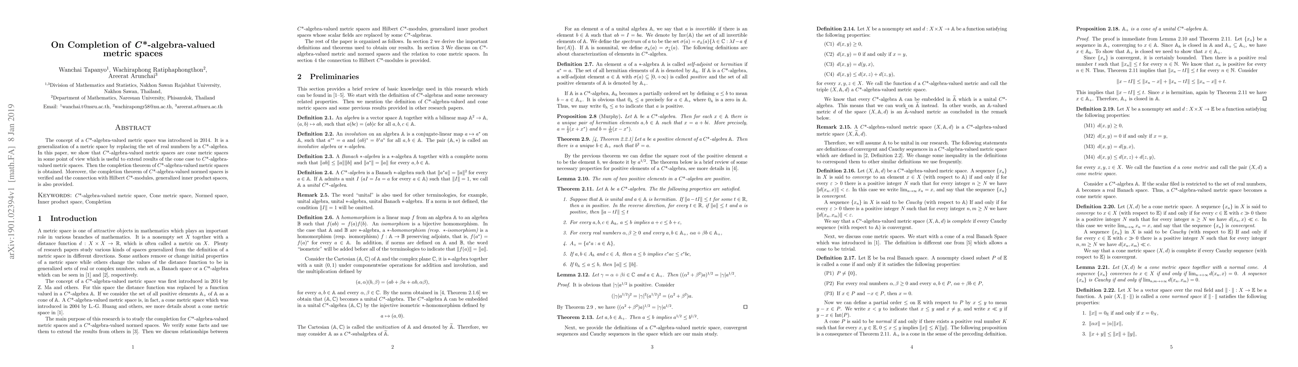 This paper generalizes metric spaces using $C^*$-algebras, demonstrating their equivalence to cone metric spaces. It establishes a completion theorem for $C^*$-algebra-valued metric spaces and normed spaces, linking them to Hilbert $C^*$-modules and generalized inner product spaces.