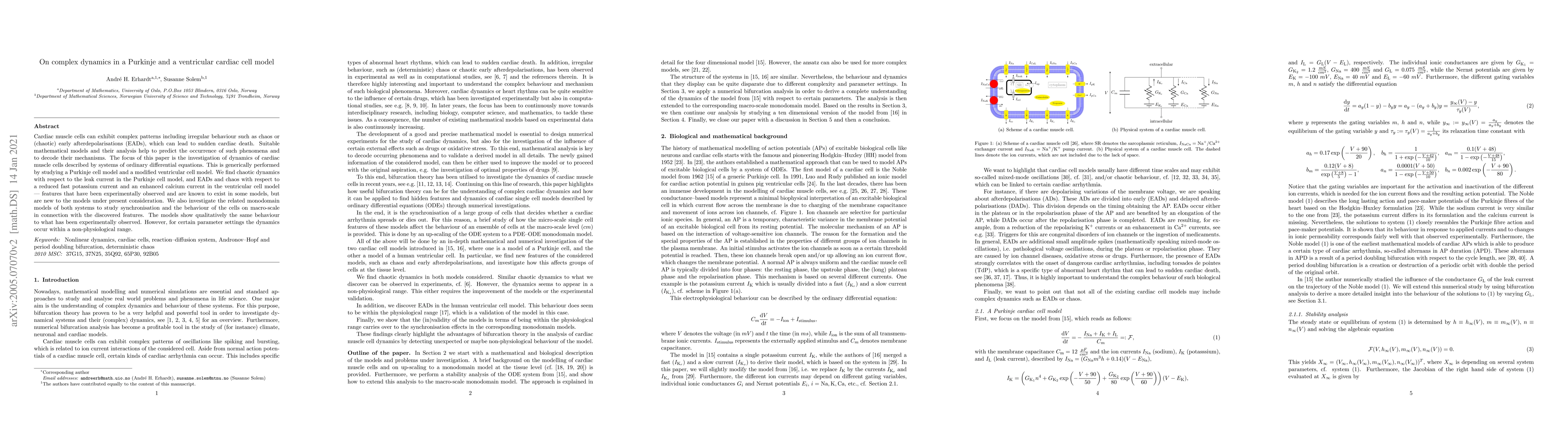 This paper investigates complex dynamics in Purkinje and ventricular cardiac cell models using ordinary differential equations, revealing chaotic dynamics and early afterdepolarisations (EADs) in both models, with some features being new to the specific models studied. The study also examines the related monodomain models to understand macro-scale behaviour and synchronization.