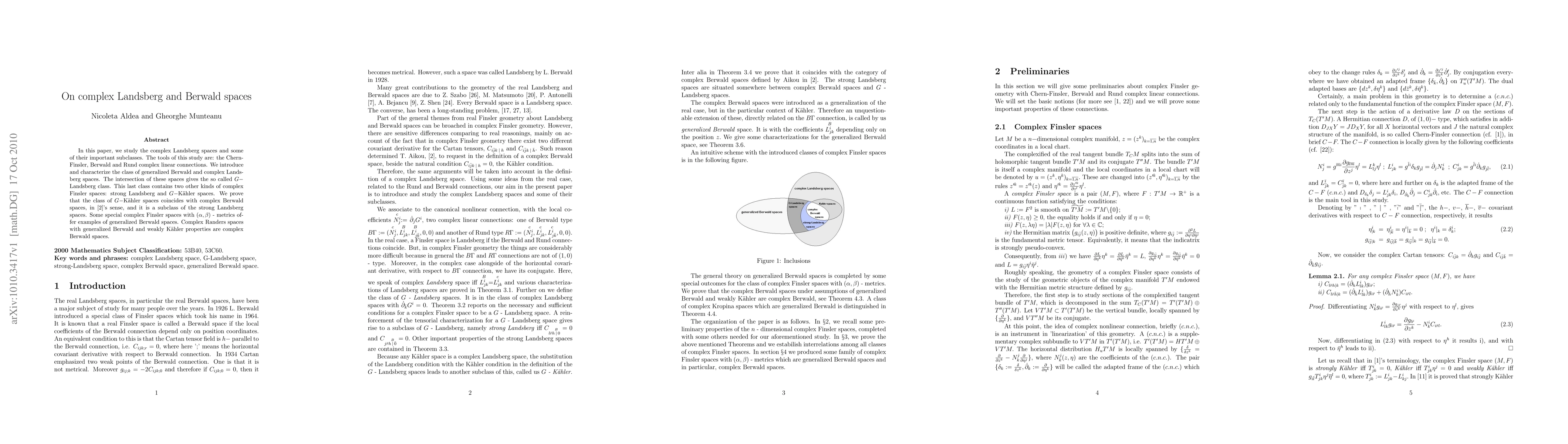 Summary: This paper explores complex Landsberg spaces and introduces generalized Berwald and complex Landsberg spaces, characterizing their intersection as the $G-$Landsberg class. It focuses on subclass relations within these complex geometric spaces.