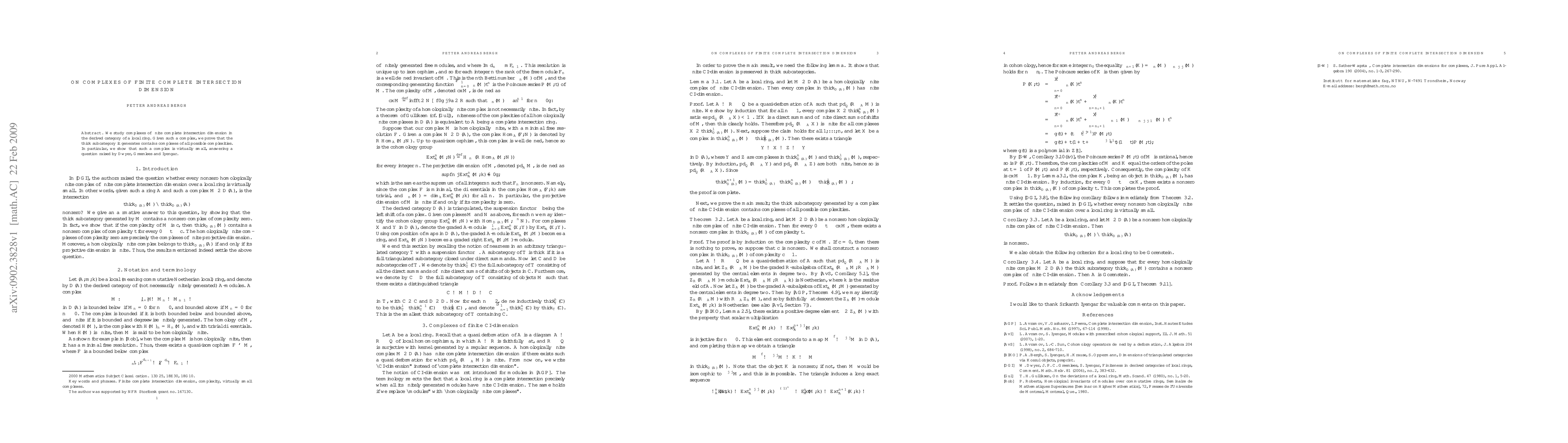 This paper investigates complexes of finite complete intersection dimension in the derived category of a local ring, proving that the thick subcategory generated by such a complex includes complexes of all complexities, and demonstrating that such a complex is virtually small, addressing a question posed by Dwyer, Greenlees, and Iyengar.