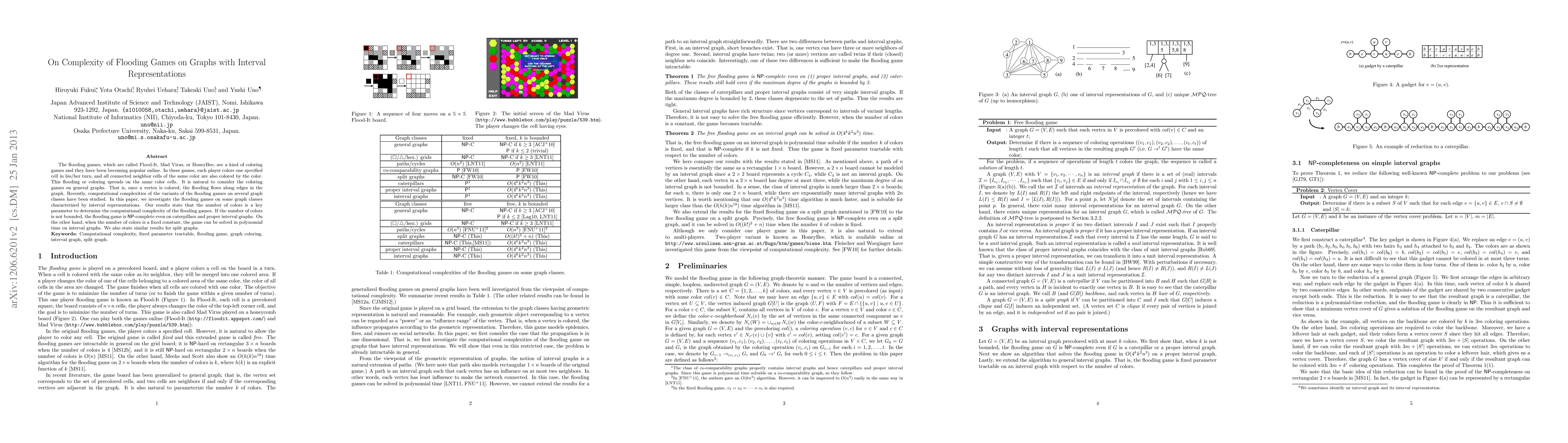 The flooding games, which are called Flood-It, Mad Virus, or HoneyBee, are a kind of coloring games and they have been becoming popular online. In these games, each player colors one specified cell in his/her turn, and all connected neighbor cells of the same color are also colored by the color. This flooding or coloring spreads on the same color cells. It is natural to consider these new coloring games on more general boards, or general graphs. Recently, computational complexities of the variants of the flooding games on several graph classes have been studied. In this paper, we investigate the flooding games on some graph classes characterized by interval representations. Our results state that the number of colors is a key parameter to determine the computational complexity of the flooding games. When the number of colors is a fixed constant, these games can be solved in polynomial time on an interval graph. On the other hand, if the number of colors is not bounded, the flooding game is NP-complete on a proper interval graph. We also state similar results for split graphs.