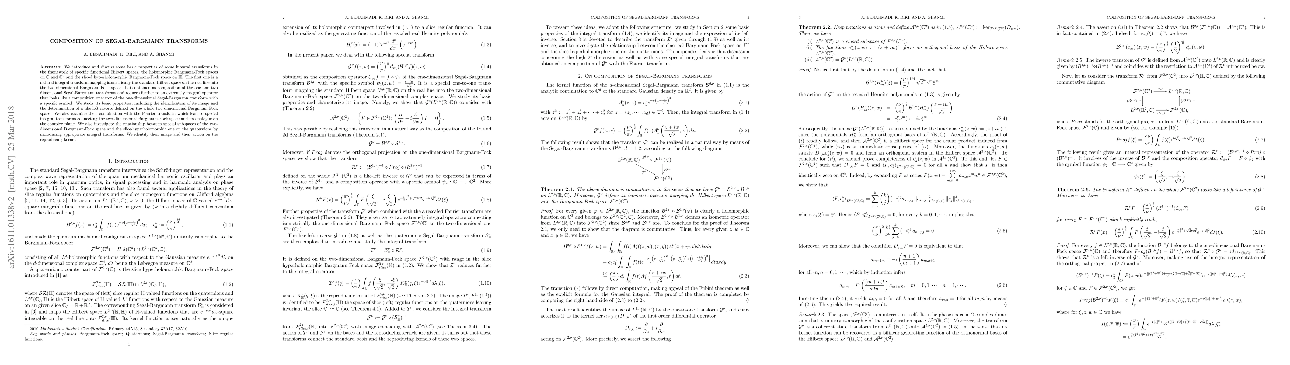 This paper explores integral transforms within functional Hilbert spaces, specifically the Segal-Bargmann transforms in Bargmann-Fock spaces over $\mathbb{C}$ and $\mathbb{H}$. It investigates the composition of these transforms and their properties, including the identification of images and inverses, and examines their combination with the Fourier transform.