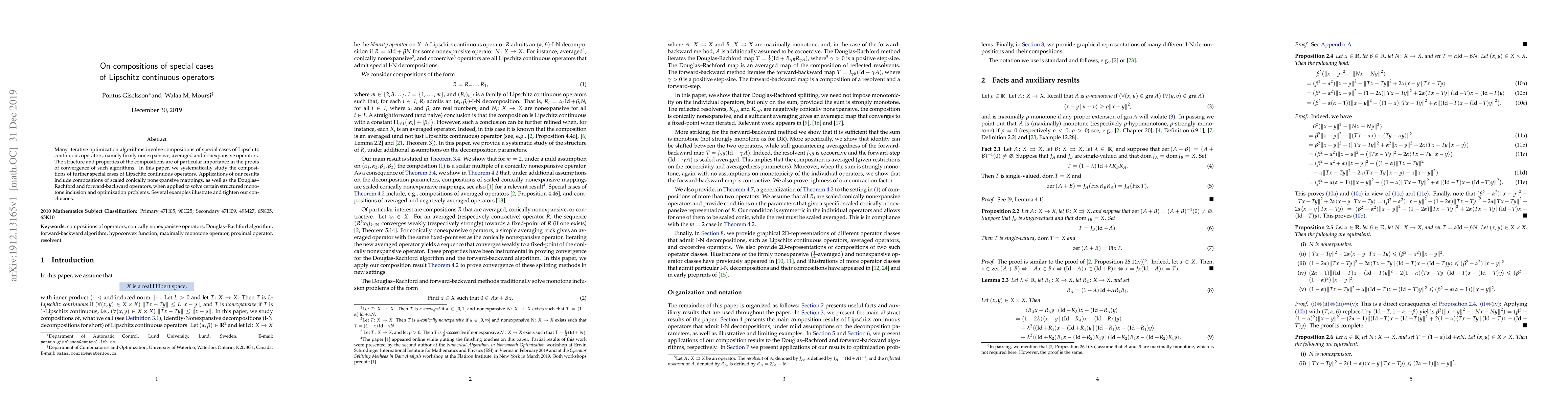 This paper systematically investigates the compositions of special cases of Lipschitz continuous operators, including firmly nonexpansive, averaged, and nonexpansive operators, to enhance the understanding of their structural properties. The findings have applications in proving the convergence of iterative optimization algorithms and include compositions of scaled conically nonexpansive mappings and the Douglas-Rachford and forward-backward operators.