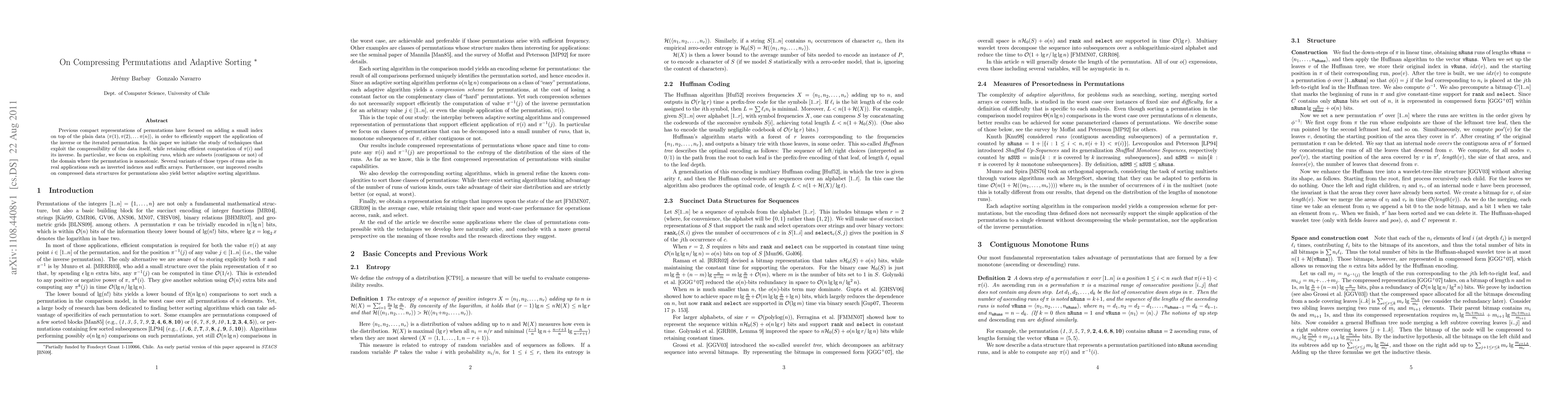 This paper explores new techniques for compressing permutations to improve sorting efficiency, focusing on runs of monotonic data, which can lead to better adaptive sorting algorithms.
