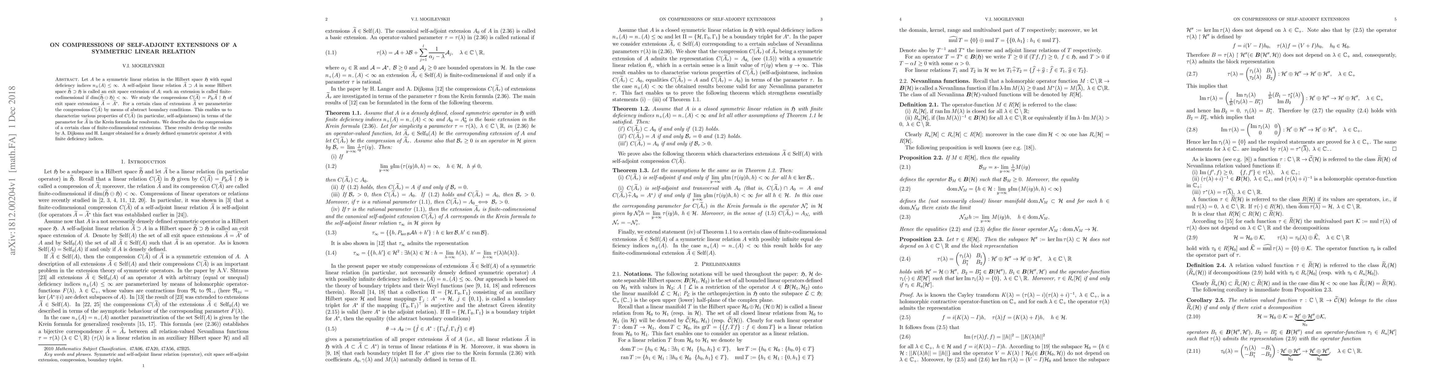 This paper explores the compressions of self-adjoint extensions of a symmetric linear relation in Hilbert space, focusing on exit space extensions. It uses abstract boundary conditions to parameterize these compressions and characterizes their properties, including self-adjointness, through the Krein formula.