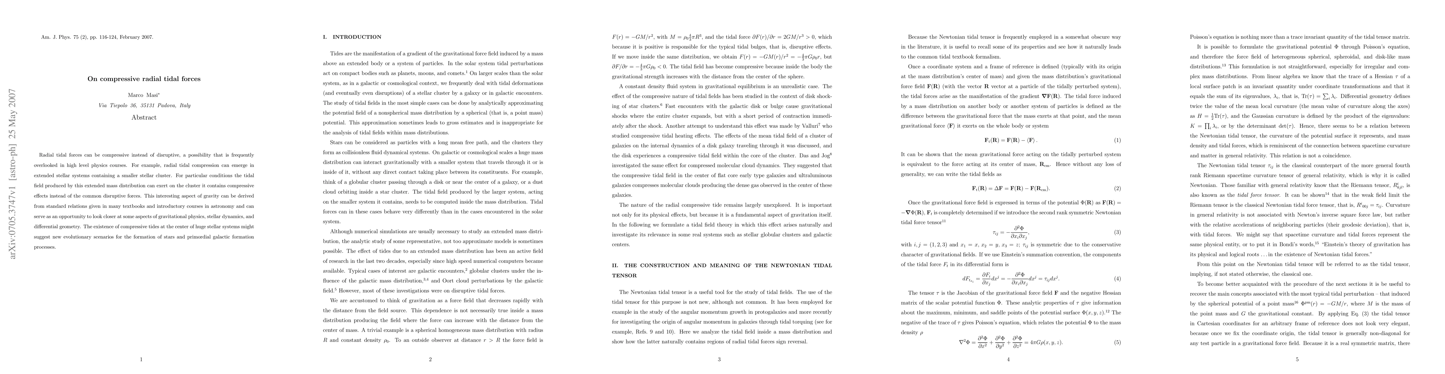 This paper explores the overlooked phenomenon of compressive radial tidal forces in extended stellar systems, where the gravitational pull can compress rather than disrupt. This insight, derived from standard gravitational physics, offers new perspectives on stellar dynamics, gravitational interactions, and potential evolutionary scenarios for star and galaxy formation.