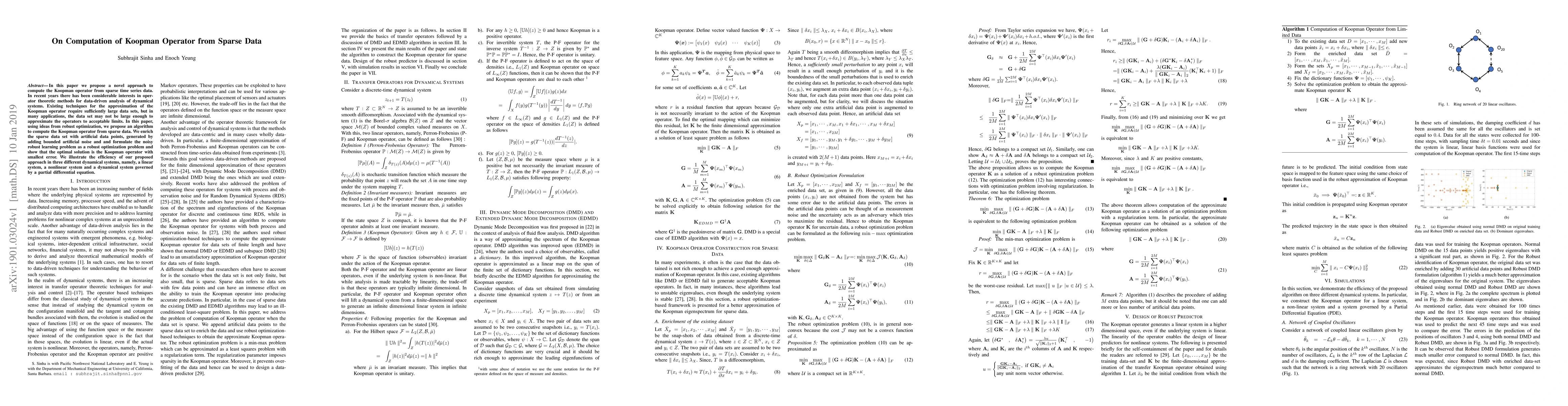 In this paper we propose a novel approach to compute the Koopman operator from sparse time series data. In recent years there has been considerable interests in operator theoretic methods for data-driven analysis of dynamical systems. Existing techniques for the approximation of the Koopman operator require sufficiently large data sets, but in many applications, the data set may not be large enough to approximate the operators to acceptable limits. In this paper, using ideas from robust optimization, we propose an algorithm to compute the Koopman operator from sparse data. We enrich the sparse data set with artificial data points, generated by adding bounded artificial noise and and formulate the noisy robust learning problem as a robust optimization problem and show that the optimal solution is the Koopman operator with smallest error. We illustrate the efficiency of our proposed approach in three different dynamical systems, namely, a linear system, a nonlinear system and a dynamical system governed by a partial differential equation.