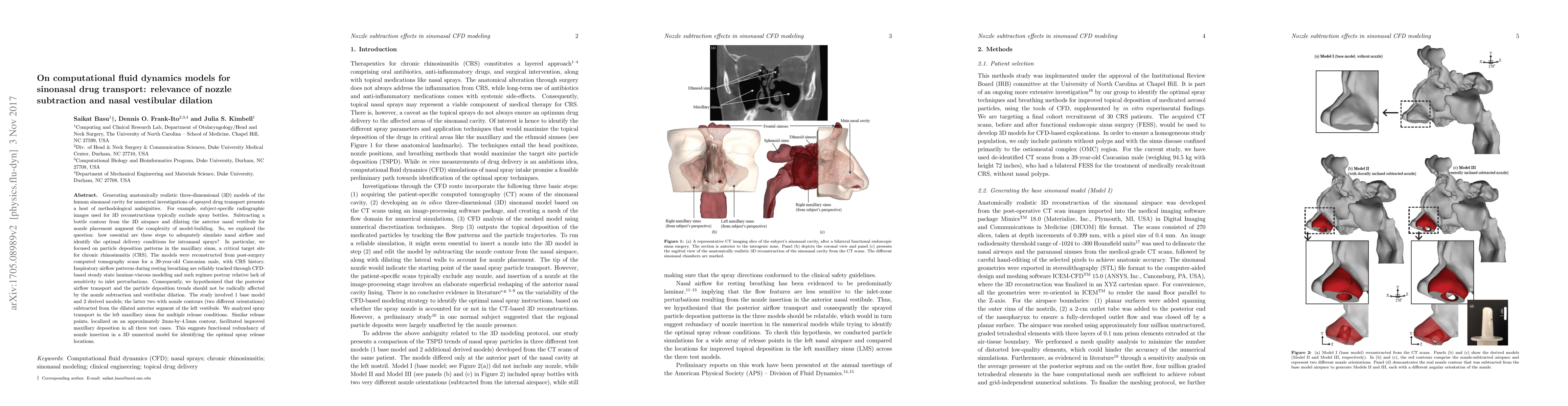 This study investigates the impact of nozzle subtraction and nasal vestibule dilation on computational fluid dynamics (CFD) models for simulating sinonasal drug transport, focusing on particle deposition in the maxillary sinus. Results suggest that these modifications do not significantly affect posterior airflow transport and particle deposition patterns, indicating that optimal spray release locations can be identified without these adjustments.
