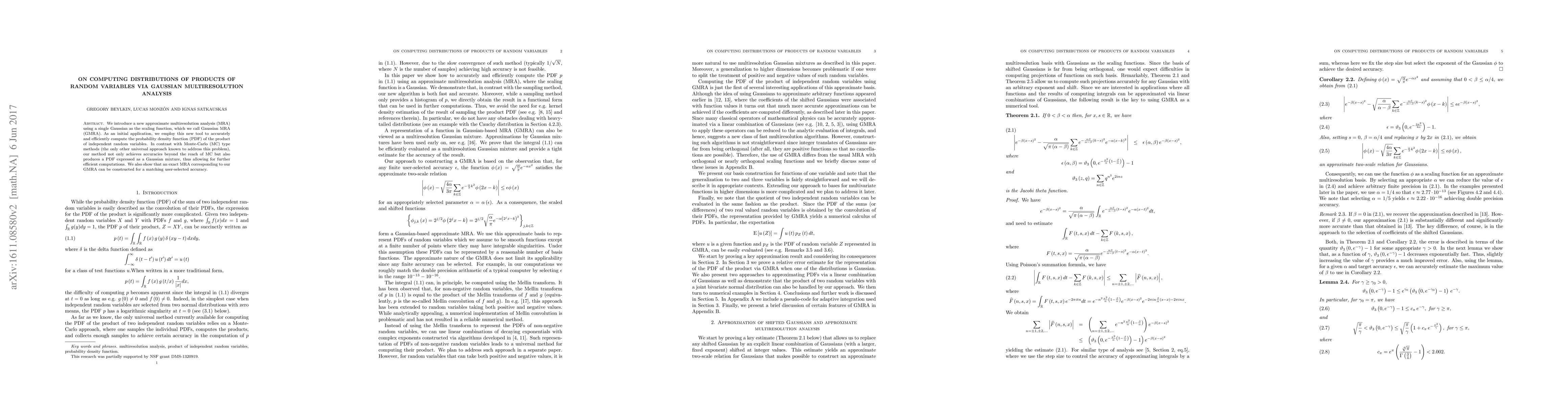 A new method, Gaussian MRA, uses a single Gaussian as the scaling function to accurately compute the probability density function of product distributions of independent random variables, outperforming Monte-Carlo methods.