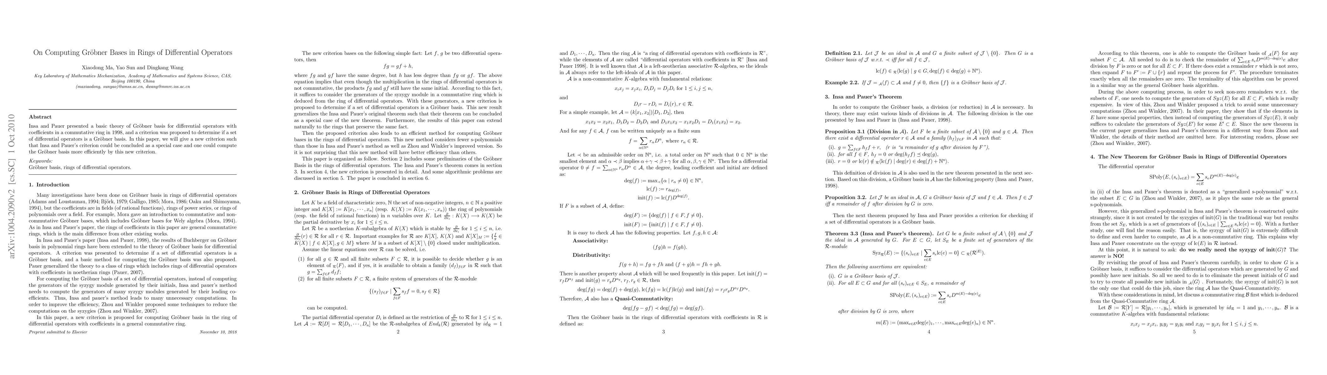 A new criterion is proposed to determine if a set of differential operators forms a Groebner basis, allowing for more efficient computation in the rings of differential operators.