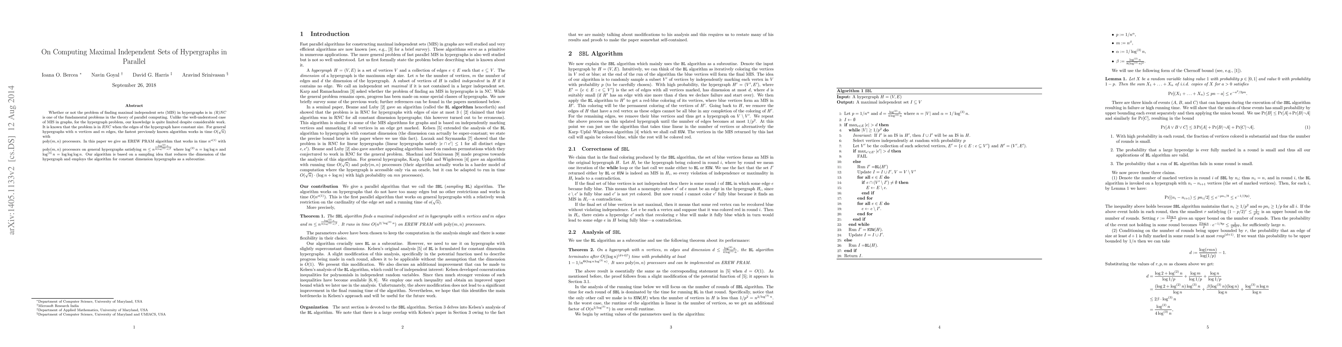 Researchers have developed an efficient algorithm to find maximal independent sets in hypergraphs on a parallel computer, achieving a significant improvement over previous results for certain types of hypergraphs.