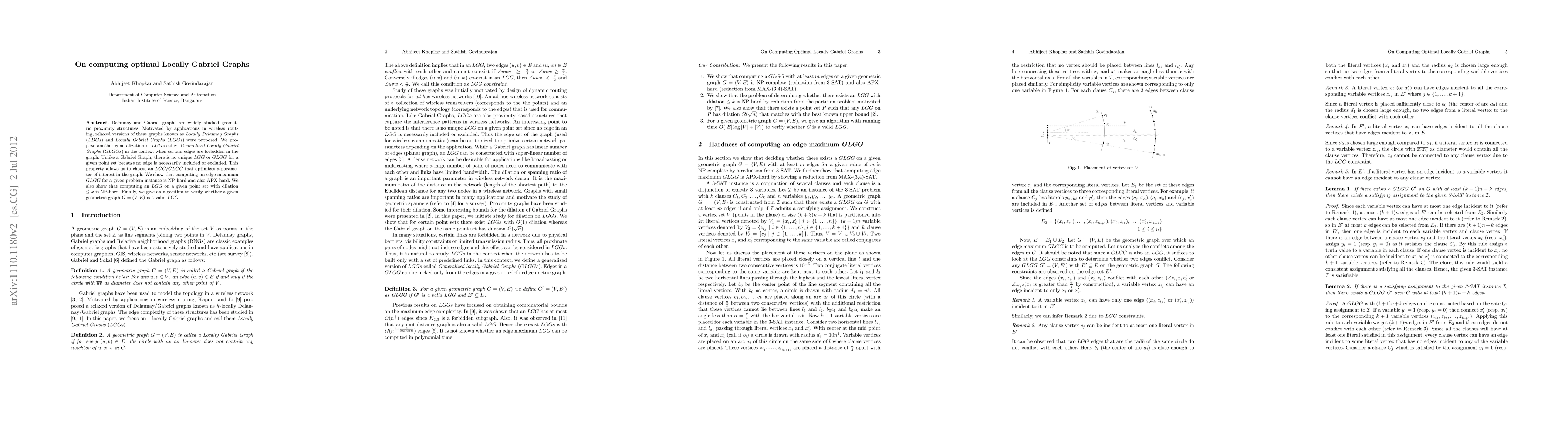 The paper proposes Generalized Locally Gabriel Graphs (GLGGs), a generalization of Locally Gabriel Graphs (LGGs) where certain edges are forbidden. It demonstrates that computing optimal GLGGs and LGGs with specific constraints is NP-hard, and presents an algorithm to verify the validity of a given geometric graph as an LGG.