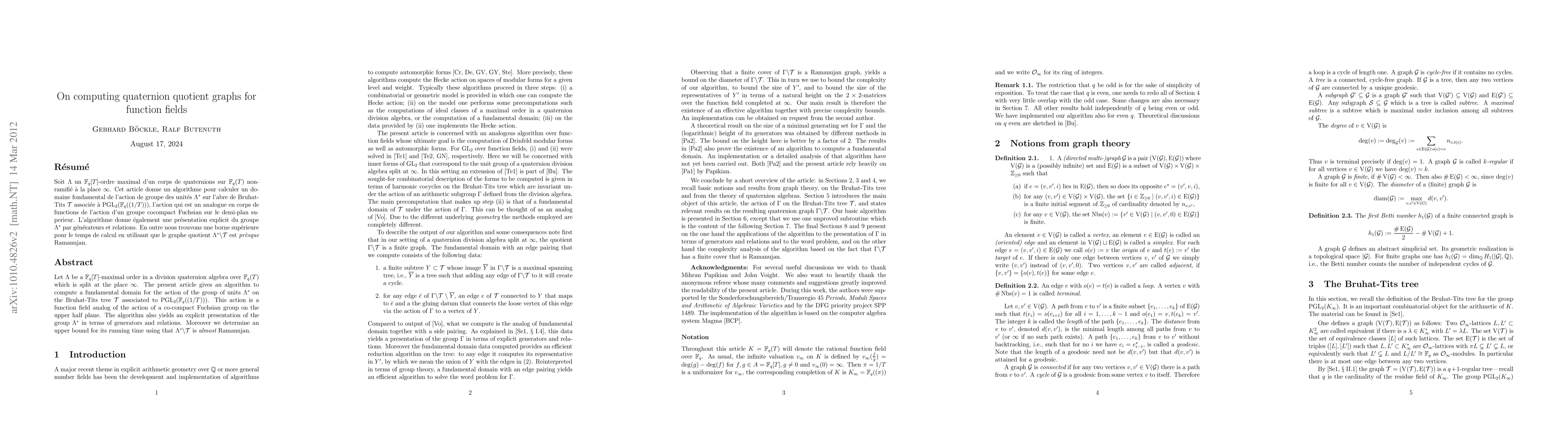 Let $\Lambda$ be a maximal $\mathbb{F}_q[T]$-order in a division quaternion algebra over $\mathbb{F}_q(T)$ which is split at the place $\infty$. The present article gives an algorithm to compute a fundamental domain for the action of the group of units $\Lambda^*$ on the Bruhat-Tits tree $\mathcal{T}$ associated to $PGL_2(\mathbb{F}_q((1/T)))$. This action is a function field analog of the action of a co-compact Fuchsian group on the upper half plane. The algorithm also yields an explicit presentation of the group $\Lambda^*$ in terms of generators and relations. Moreover we determine an upper bound for its running time using that $\Lambda^*\backslash\mathcal{T}$ is {\em almost} Ramanujan.