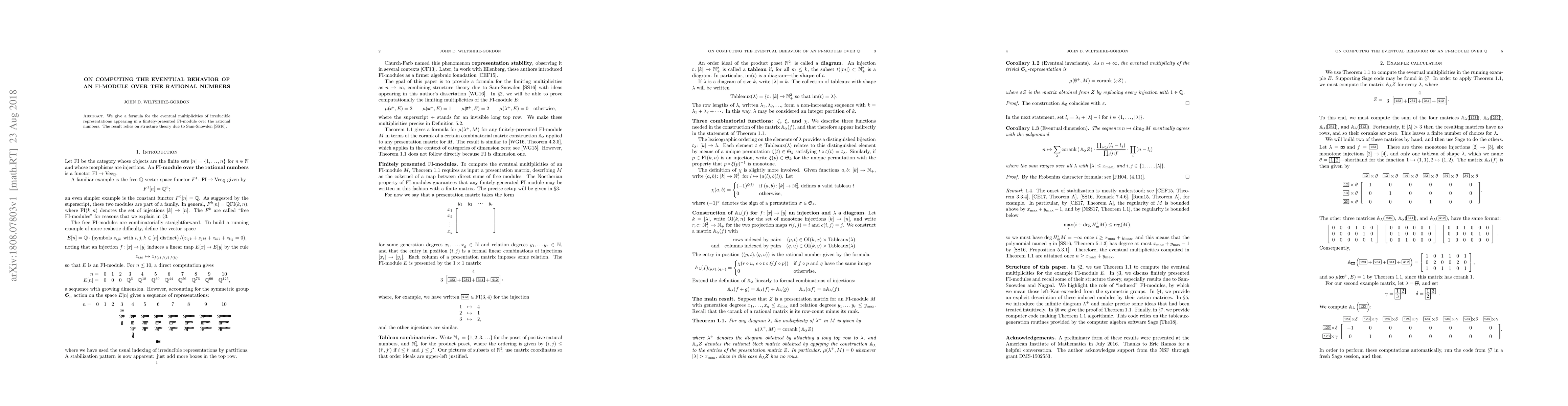 Summary: This paper presents a formula for determining the eventual multiplicities of irreducible representations in finitely-presented FI-modules over the rational numbers, utilizing structure theory from Sam-Snowden (SS16).
