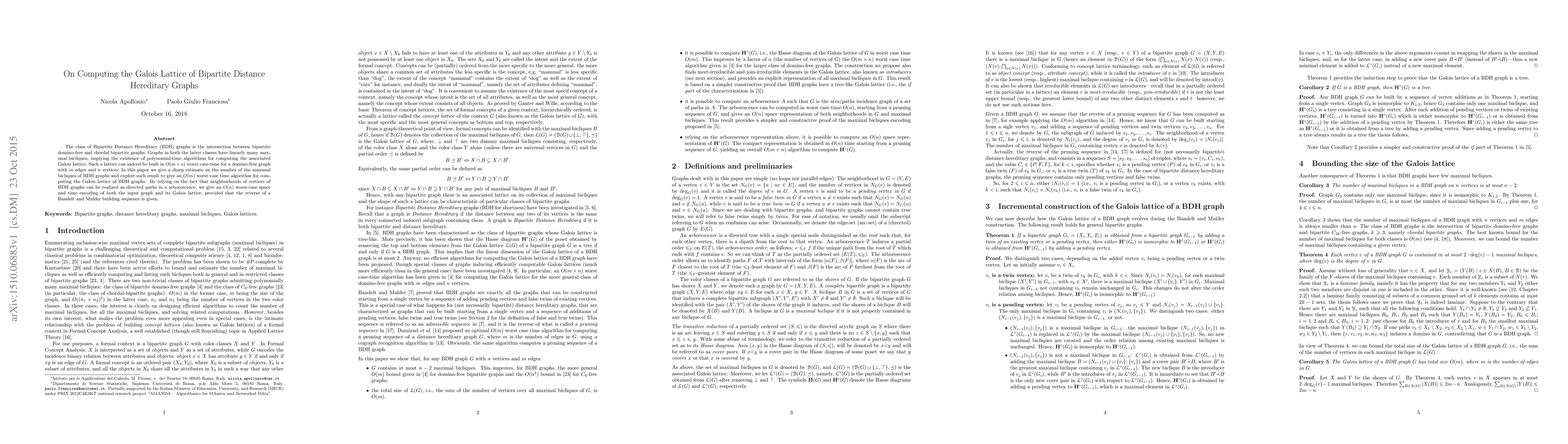 The class of Bipartite Distance Hereditary (BDH) graphs is the intersection between bipartite domino-free and chordal bipartite graphs.\ Graphs in both the latter classes have linearly many maximal bicliques, implying the existence of polynomial-time algorithms for computing the associated Galois lattice.\ Such a lattice can indeed be built in $O(m\times n)$ worst case-time for a domino-free graph with $m$ edges and $n$ vertices.\ In this paper we give a sharp estimate on the number of the maximal bicliques of BDH graphs and exploit such result to give an $O(m)$ worst case time algorithm for computing the Galois lattice of BDH graphs. By relying on the fact that neighborhoods of vertices of BDH graphs can be realized as directed paths in a arborescence, we give an $O(n)$ worst-case space and time encoding of both the input graph and its Galois lattice, provided that the reverse of a Bandelt and Mulder building sequence is given.