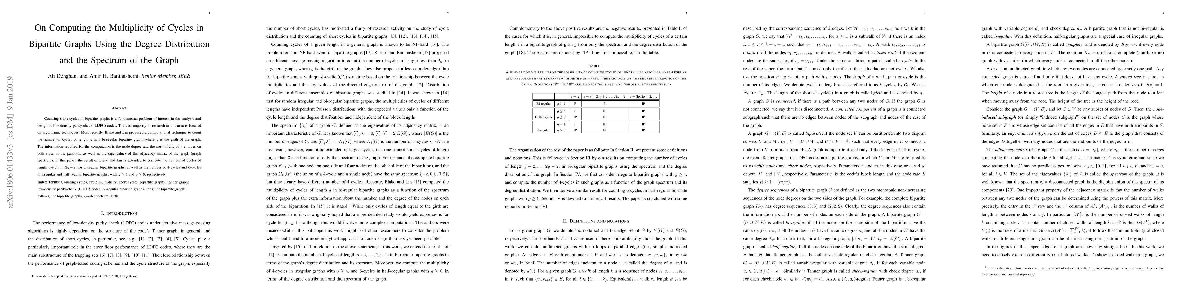 This paper extends Blake and Lin's method for counting cycles in bi-regular bipartite graphs to include cycles of length $g+2$ to $2g-2$, and specifically $4$-cycles and $6$-cycles in irregular and half-regular bipartite graphs, using node degree distribution and graph spectrum.