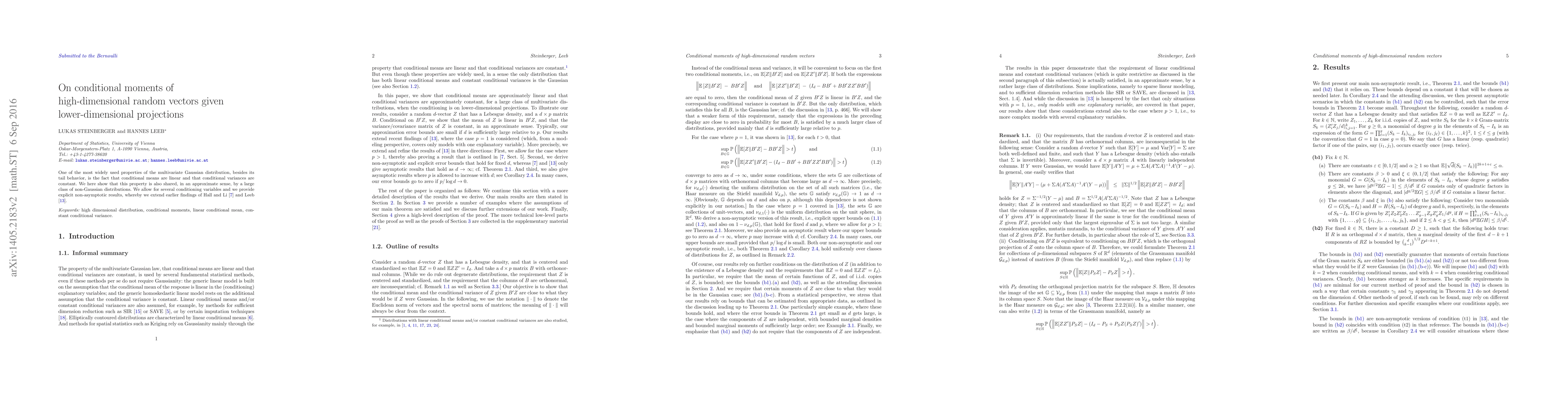 One of the most widely used properties of the multivariate Gaussian distribution, besides its tail behavior, is the fact that conditional means are linear and that conditional variances are constant. We here show that this property is also shared, in an approximate sense, by a large class of non-Gaussian distributions. We allow for several conditioning variables and we provide explicit non-asymptotic results, whereby we extend earlier findings of Hall and Li (1993) and Leeb (2013).