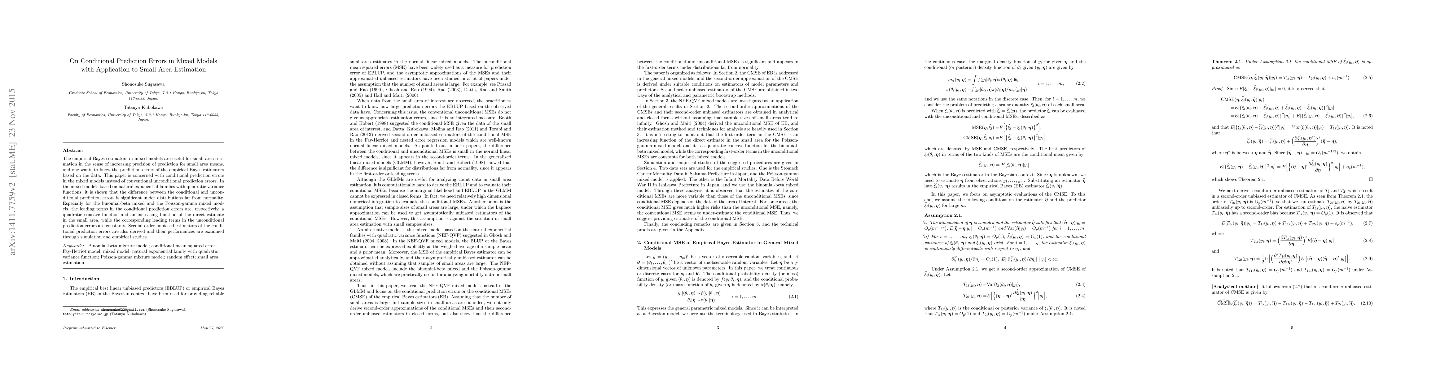This paper investigates conditional prediction errors in mixed models for small area estimation, demonstrating significant differences from conventional unconditional errors, especially under non-normal distributions. It derives second-order unbiased estimators for these conditional errors and evaluates their performance through simulations and empirical studies.