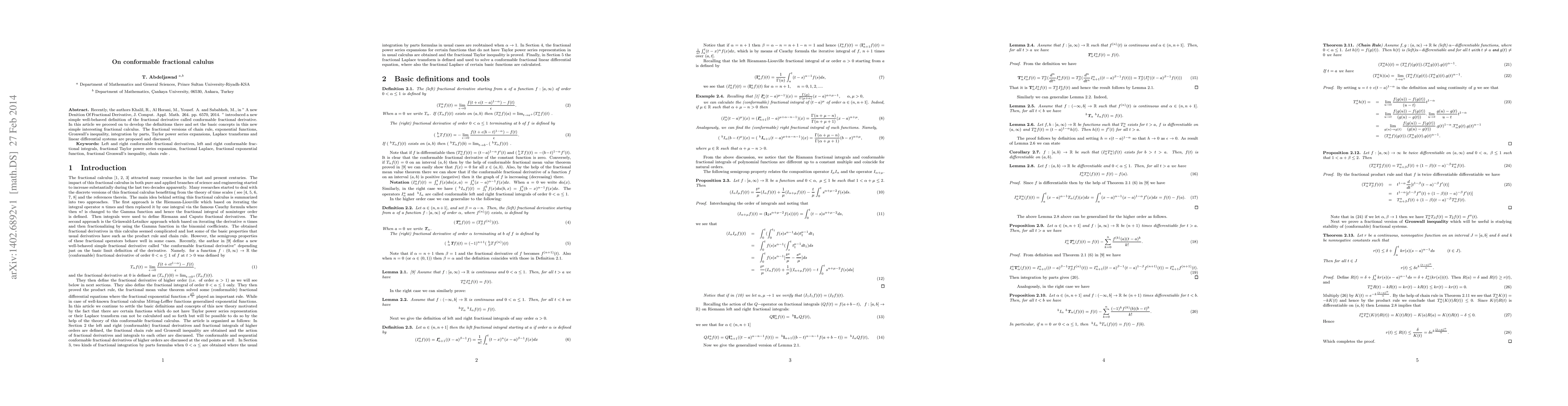 Recently, the authors Khalil, R., Al Horani, M., Yousef. A. and Sababheh, M., in " A new Denition Of Fractional Derivative, J. Comput. Appl. Math. 264. pp. 6570, 2014. " introduced a new simple well-behaved definition of the fractional derivative called conformable fractional derivative. In this article we proceed on to develop the definitions there and set the basic concepts in this new simple interesting fractional calculus. The fractional versions of chain rule, exponential functions, Gronwall's inequality, integration by parts, Taylor power series expansions, Laplace transforms and linear differential systems are proposed and discussed.