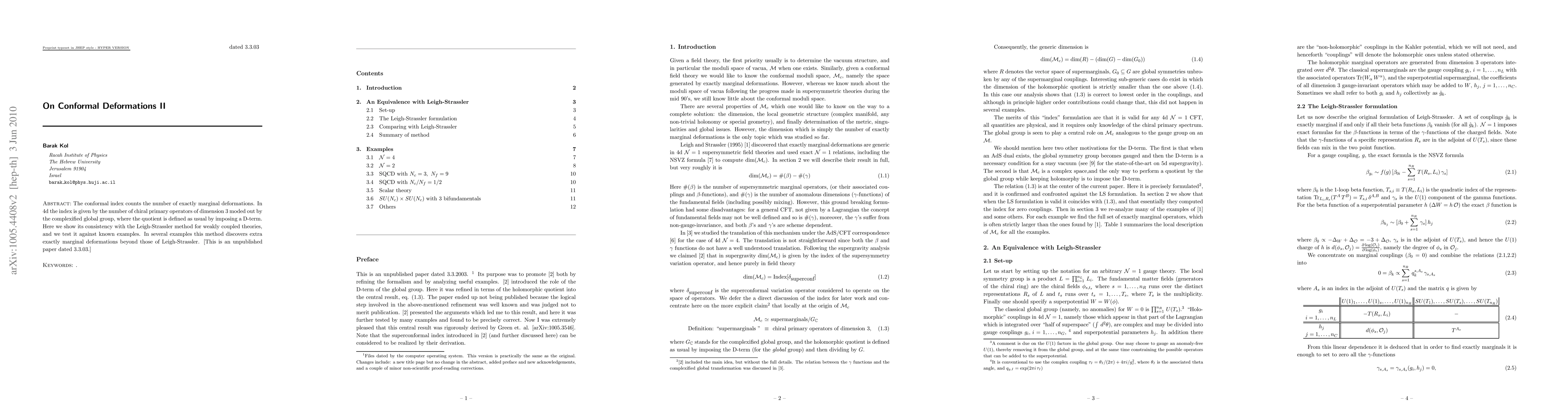 The conformal index counts the number of exactly marginal deformations. In 4d the index is given by the number of chiral primary operators of dimension 3 moded out by the complexified global group, where the quotient is defined as usual by imposing a D-term. Here we show its consistency with the Leigh-Strassler method for weakly coupled theories, and we test it against known examples. In several examples this method discovers extra exactly marginal deformations beyond those of Leigh-Strassler. [This is an unpublished paper dated 3.3.03.]