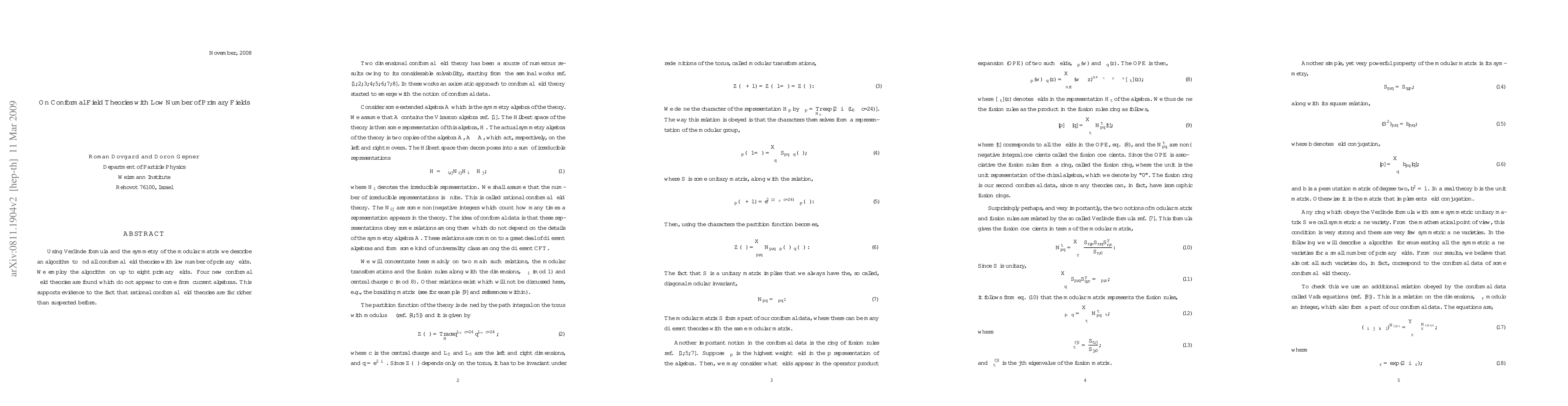 The paper proposes an algorithm utilizing Verlinde formula and modular matrix symmetry to identify conformal field theories with a limited number of primary fields, discovering four new examples with up to eight primary fields, suggesting a greater richness in rational conformal field theories than previously thought.