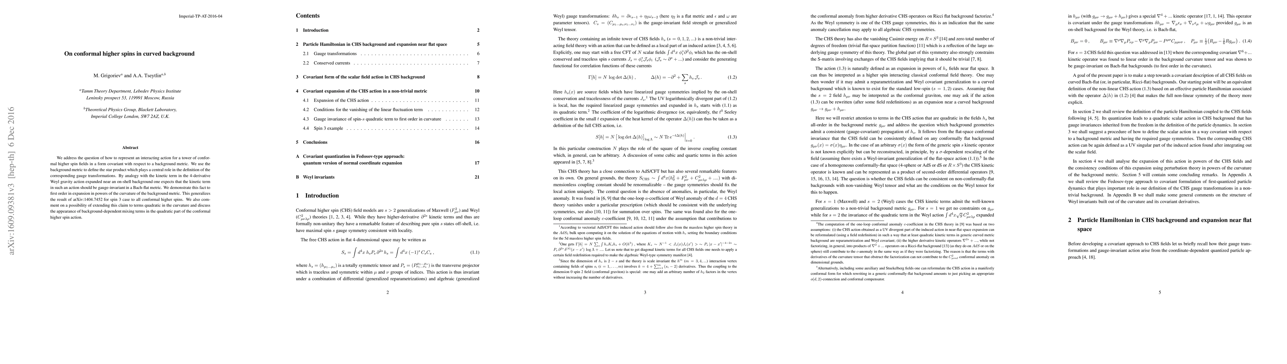 This paper investigates how to represent conformal higher spin fields on a curved background in a covariant form, finding that the kinetic term of such an action is gauge-invariant in a Bach-flat metric.