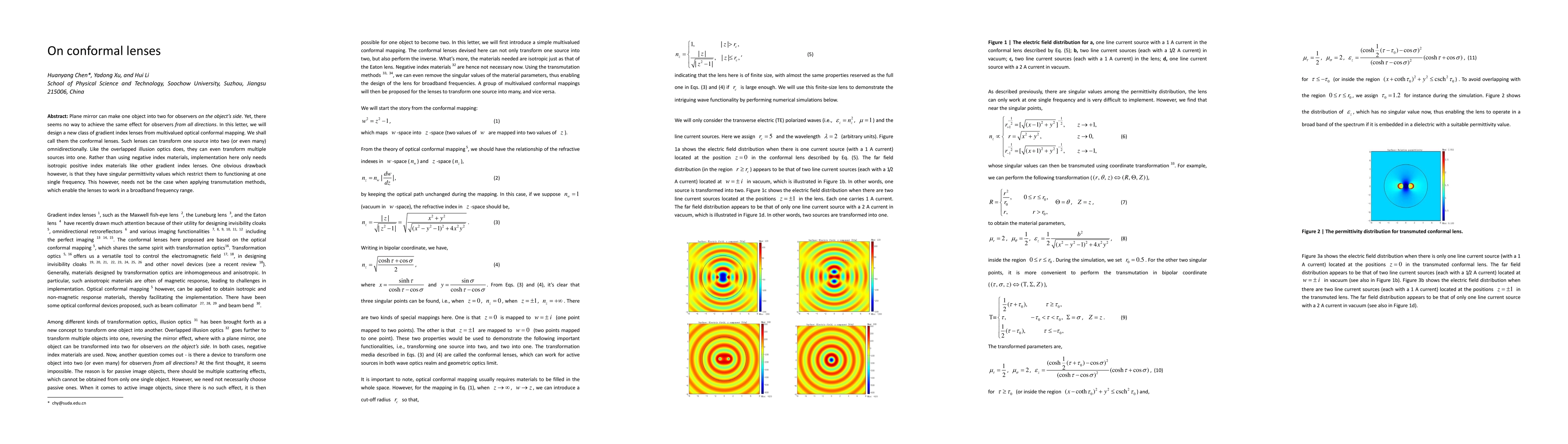 This paper introduces a new type of gradient index lens called conformal lenses, which can transform one source into multiple images omnidirectionally using positive index materials. While these lenses have singular permittivity values limiting them to a single frequency, transmutation methods can extend their functionality to a broadband frequency range.