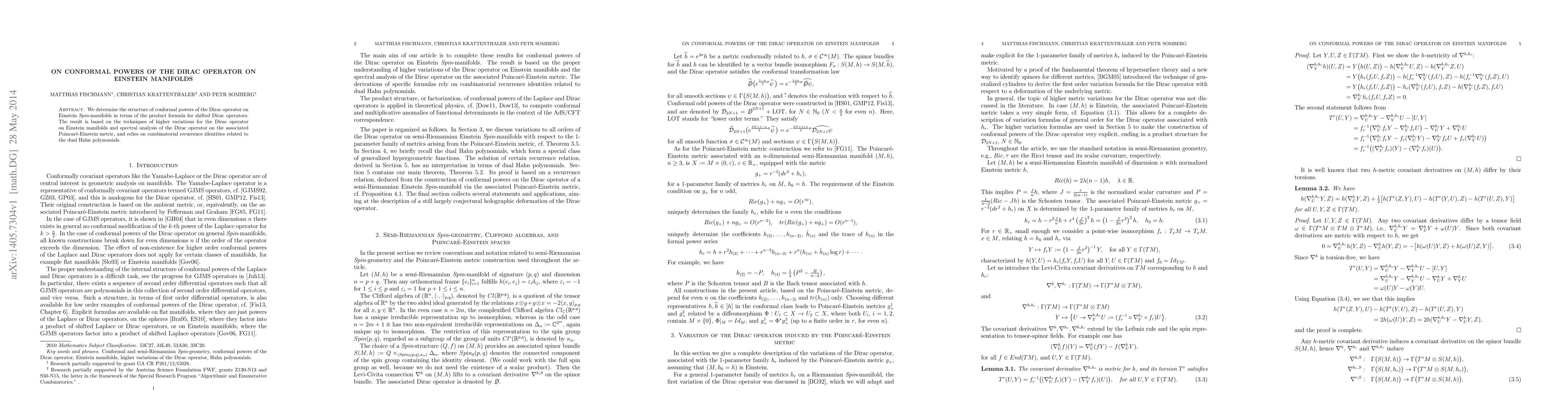 This paper explores the conformal powers of the Dirac operator on Einstein Spin-manifolds, revealing their structure through a product formula for shifted Dirac operators, utilizing advanced techniques and spectral analysis. The findings are grounded in combinatorial recurrence identities linked to dual Hahn polynomials.