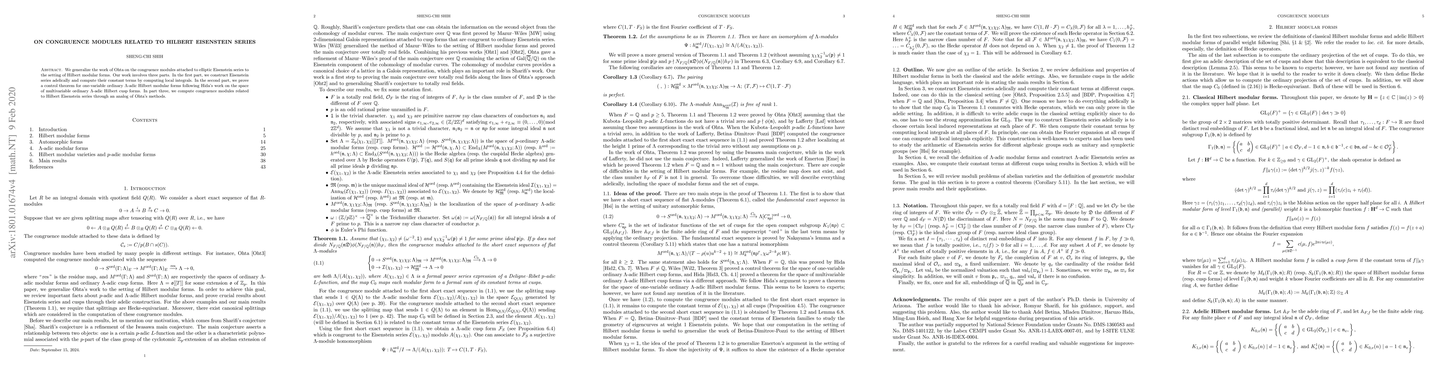 Summary: This paper generalizes Ohta's congruence modules for elliptic Eisenstein series to Hilbert modular forms, constructing Eisenstein series adelically, proving a control theorem for ordinary $\Lambda$-adic forms, and computing related congruence modules using Ohta's methods.