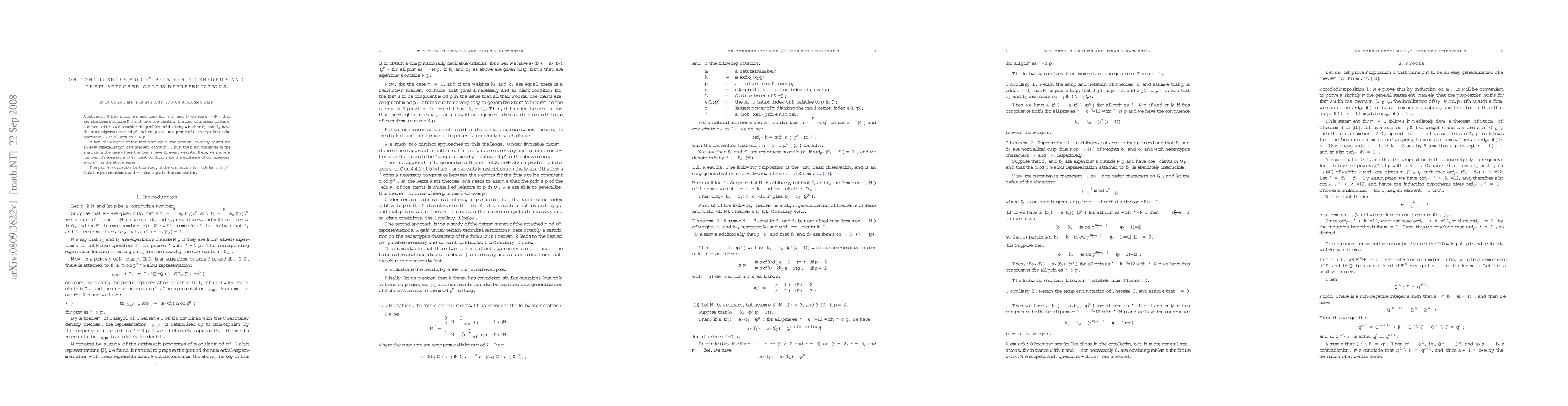 This paper explores congruences modulo ${\mathfrak p}^m$ between eigenforms and their associated Galois representations, focusing on cusp forms $f_1$ and $f_2$ outside $Np$ with coefficients in a number field $K$. It provides conditions for congruences under Hecke operators, particularly when the forms have different weights, and discusses the relevance to modular Galois representations.