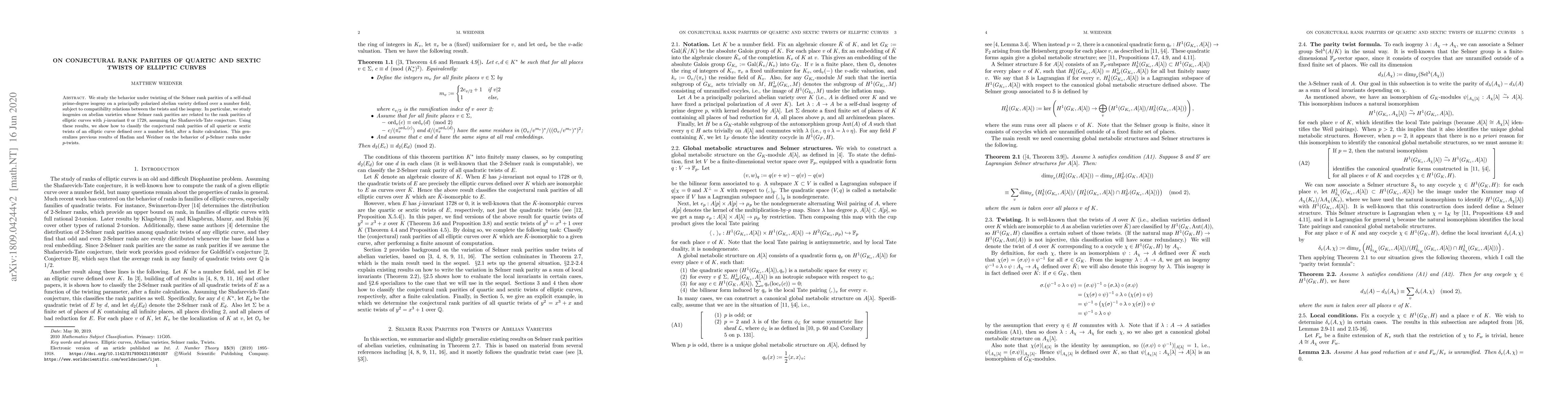 This paper studies how twisting elliptic curves affects their rank parities under certain conditions, leading to a method for classifying the conjectural rank parities of quartic and sextic twists in a generalizable way.