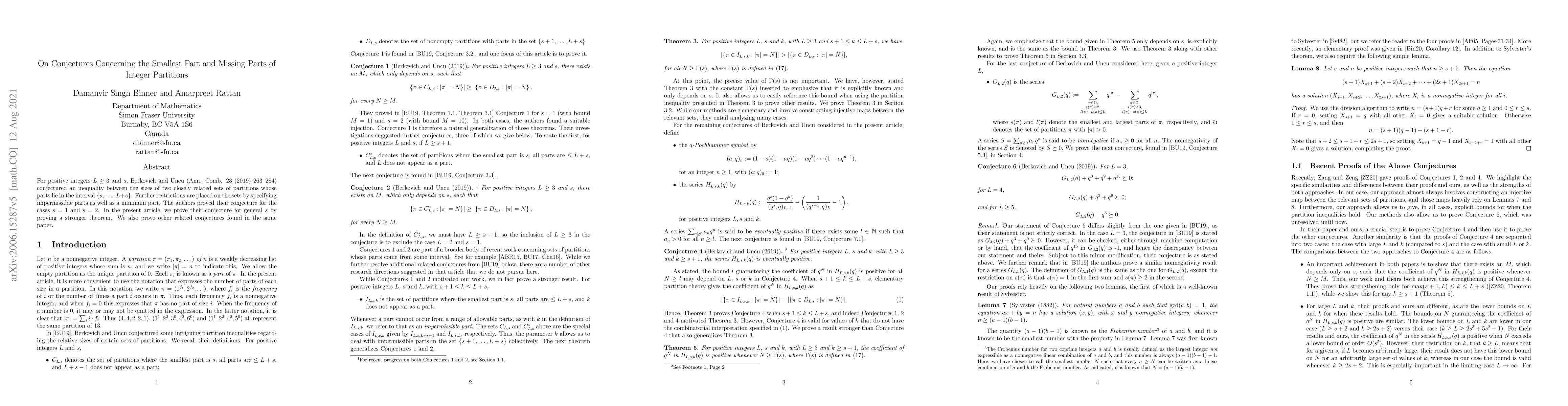 This paper proves a conjecture by Berkovich and Uncu regarding inequalities between sizes of integer partitions with parts in a specified range, extending the proof to all positive integers $s$ and generalizing the original results for $s=1$ and $s=2$. Additionally, it verifies other related conjectures from the same source.