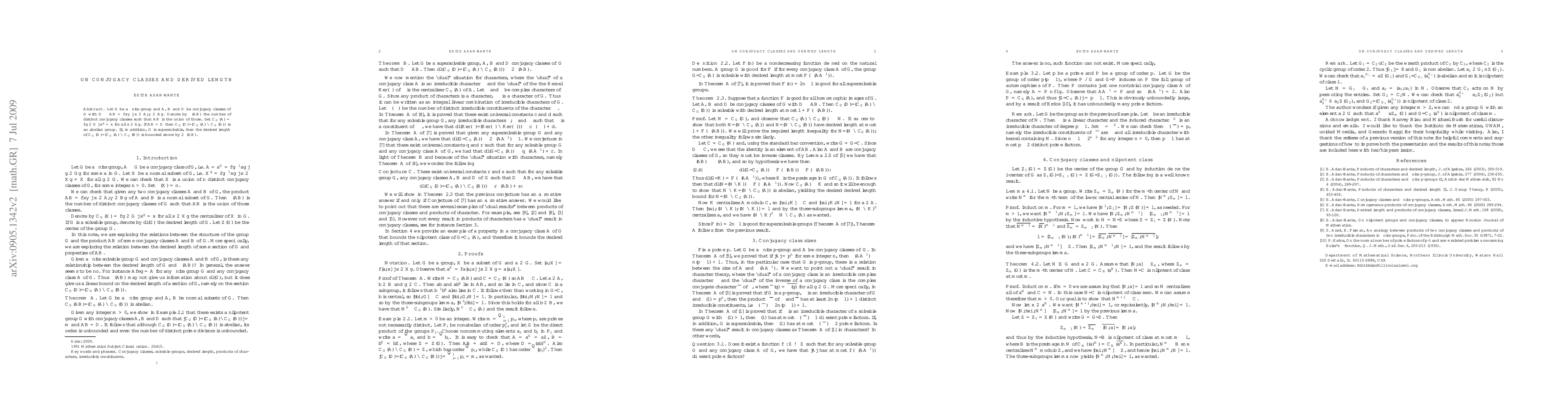 Let $G$ be a finite group and $A$, $B$ and $D$ be conjugacy classes of $ G$ with $D\subseteq AB=\{xy\mid x\in A, y\in B\}$. Denote by $\eta(AB)$ the number of distinct conjugacy classes such that $AB$ is the union of those. Set ${\bf C}_G(A)=\{g\in G\mid x^g=x {for all} x\in A\}$. If $AB=D$ then ${\bf C}_G(D)/({\bf C}_G(A)\cap{\bf C}_G(B))$ is an abelian group. If, in addition, $G$ is supersolvable, then the derived length of ${\bf C}_G(D)/({\bf C}_G(A)\cap{\bf C}_G(B))$ is bounded above by $2\eta(AB)$.