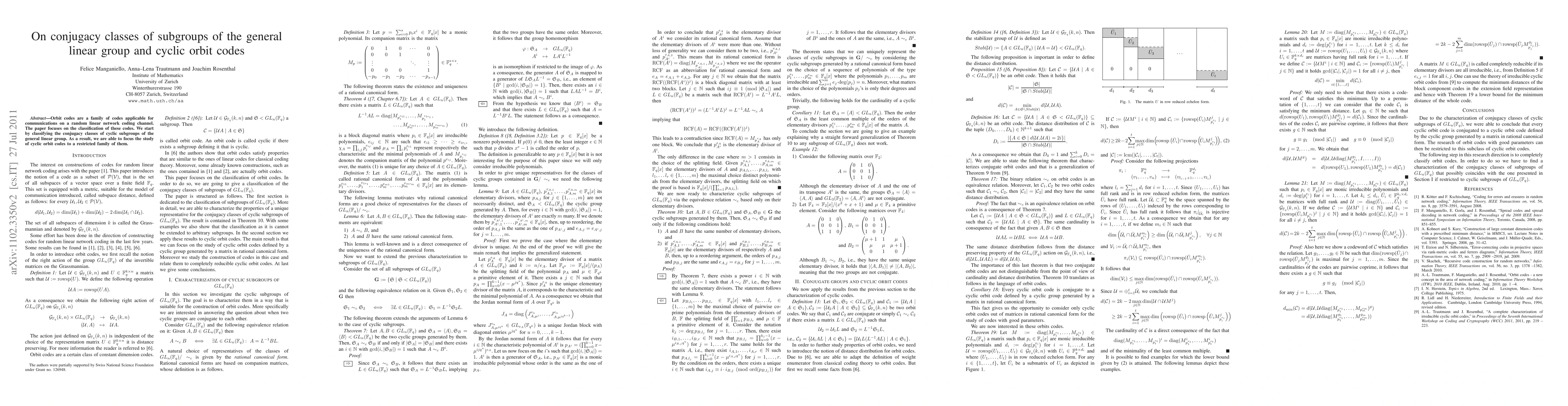 Orbit codes are a family of codes employable for communications on a random linear network coding channel. The paper focuses on the classification of these codes. We start by classifying the conjugacy classes of cyclic subgroups of the general linear group. As a result, we are able to focus the study of cyclic orbit codes to a restricted family of them.
