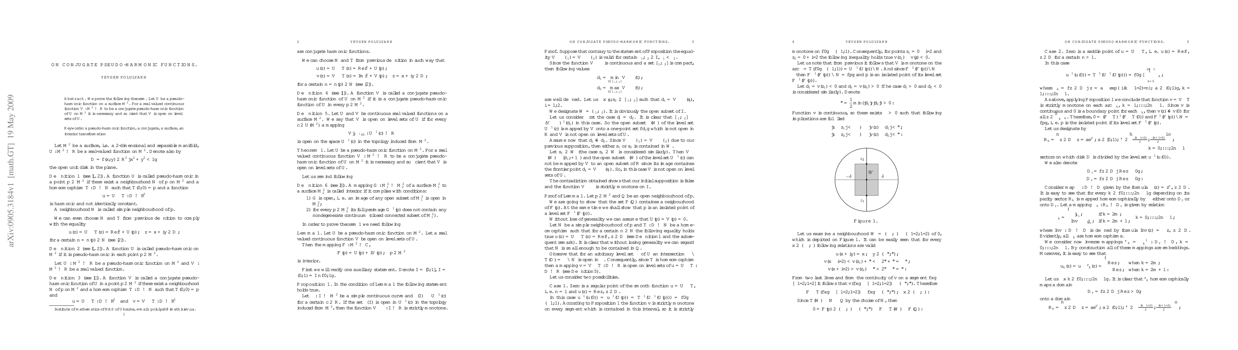 We prove the following theorem. Let $U$ be a pseudo-harmonic function on a surface $M^2$. For a real valued continuous function $V : M^2 \to {\mathbb R}$ to be a conjugate pseudo-harmonic function of $U$ on $M^2$ it is necessary and sufficient that $V$ is open on level sets of $U$.