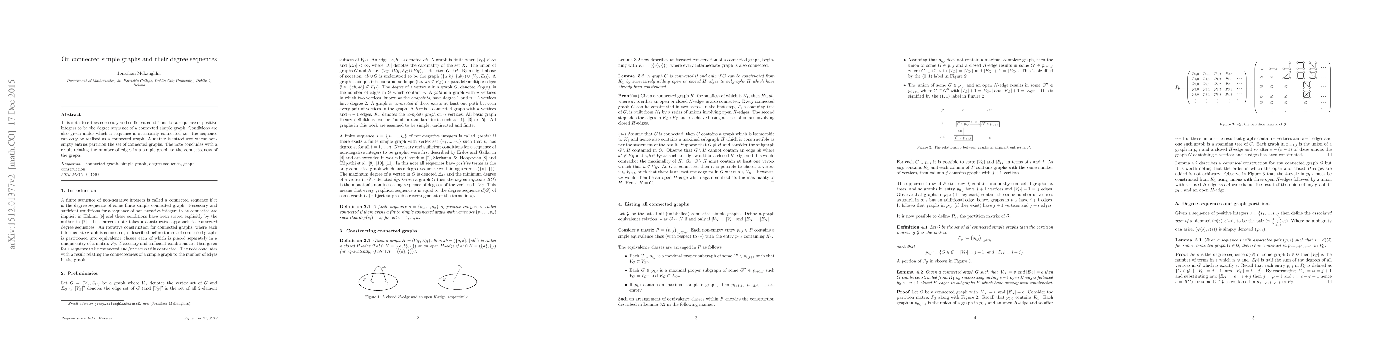 This paper establishes necessary and sufficient conditions for a sequence of positive integers to represent the degree sequence of a connected simple graph, and introduces a matrix for partitioning connected graphs. It also relates the number of edges in a simple graph to its connectedness.
