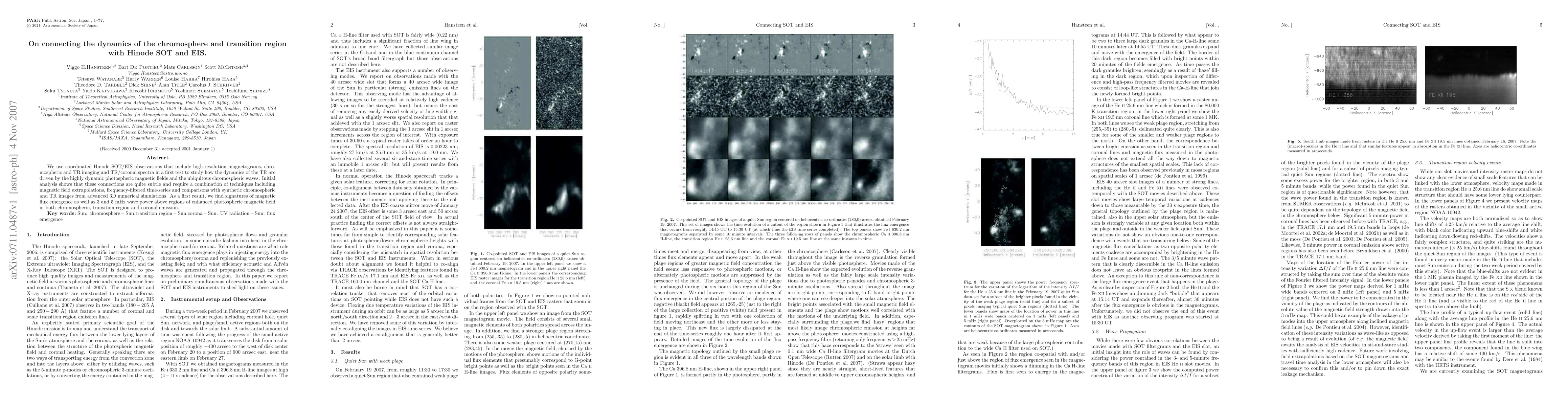 We use coordinated Hinode SOT/EIS observations that include high-resolution magnetograms, chromospheric and TR imaging and TR/coronal spectra in a first test to study how the dynamics of the TR are driven by the highly dynamic photospheric magnetic fields and the ubiquitous chromospheric waves. Initial analysis shows that these connections are quite subtle and require a combination of techniques including magnetic field extrapolations, frequency-filtered time-series and comparisons with synthetic chromospheric and TR images from advanced 3D numerical simulations. As a first result, we find signatures of magnetic flux emergence as well as 3 and 5 mHz wave power above regions of enhanced photospheric magnetic field in both chromospheric, transition region and coronal emission.