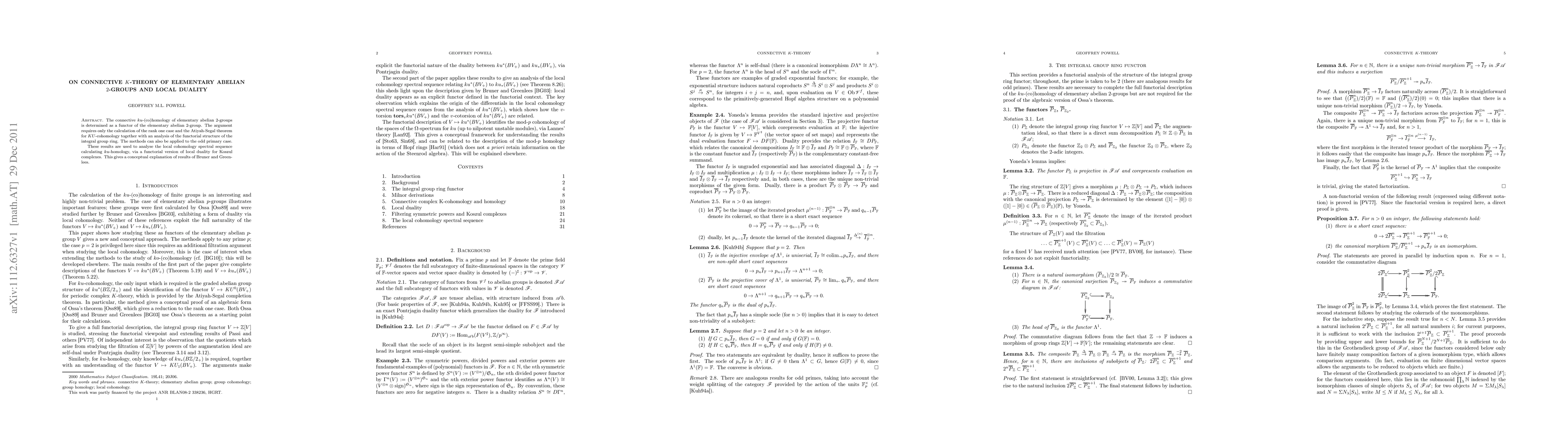 This paper determines the connective KU-(co)homology of elementary abelian 2-groups, relying on the rank one case and the Atiyah-Segal theorem, and applies these methods to analyze the local cohomology spectral sequence, providing a new perspective on local duality for Koszul complexes.
