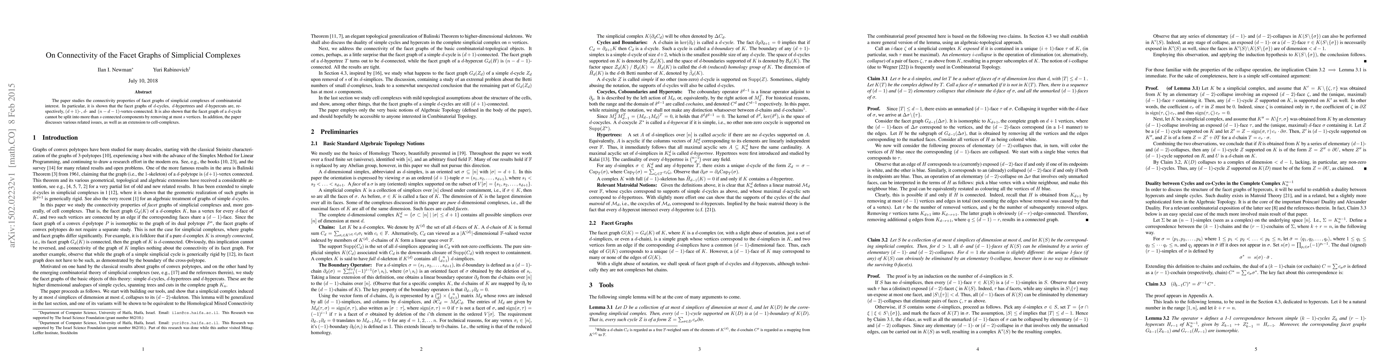 The paper studies the connectivity properties of facet graphs of simplicial complexes using combinatorial techniques, extending results to cell-complexes.