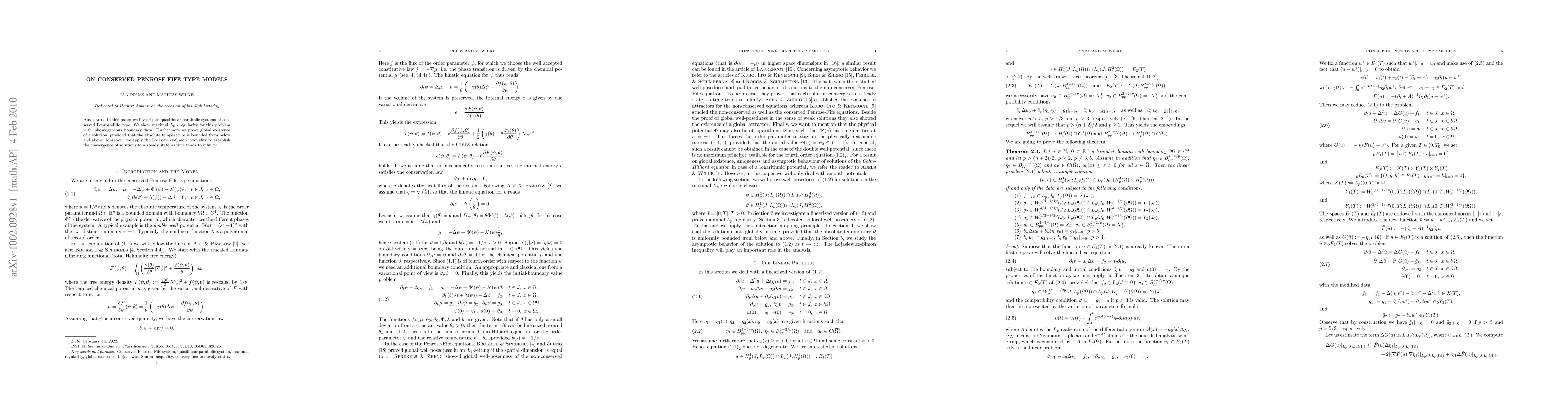 Researchers proved global existence of solutions for quasilinear parabolic systems with conserved Penrose-Fife type, under certain temperature bounds, and demonstrated convergence to steady state as time tends to infinity.