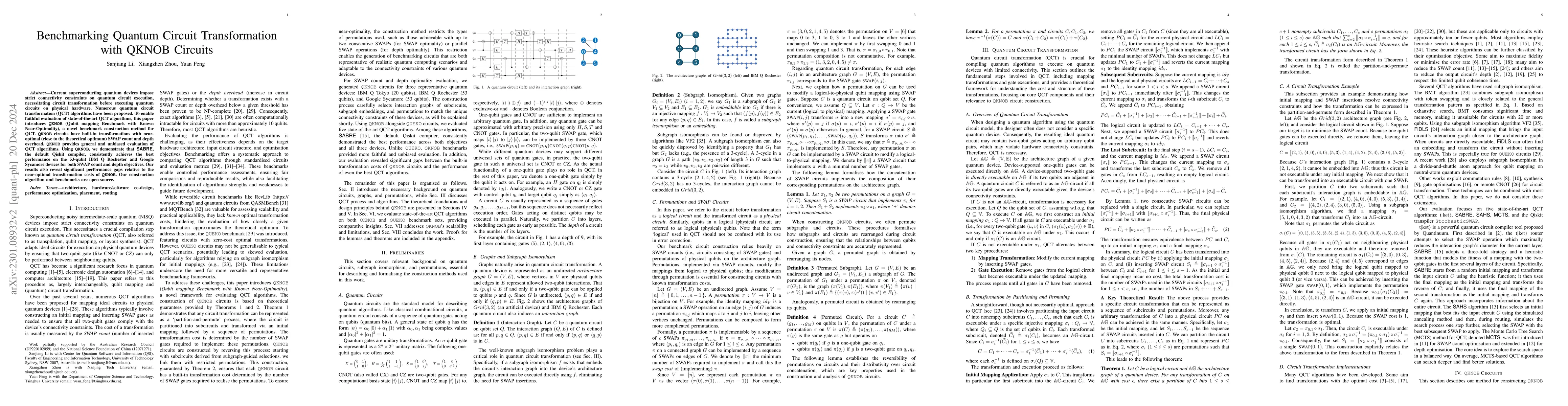 This paper proposes QUEKNO benchmarks for evaluating quantum circuit transformation (QCT) algorithms, featuring circuits with known near-optimal transformation costs. It demonstrates that SABRE performs well in reducing gate size and depth on real quantum devices.