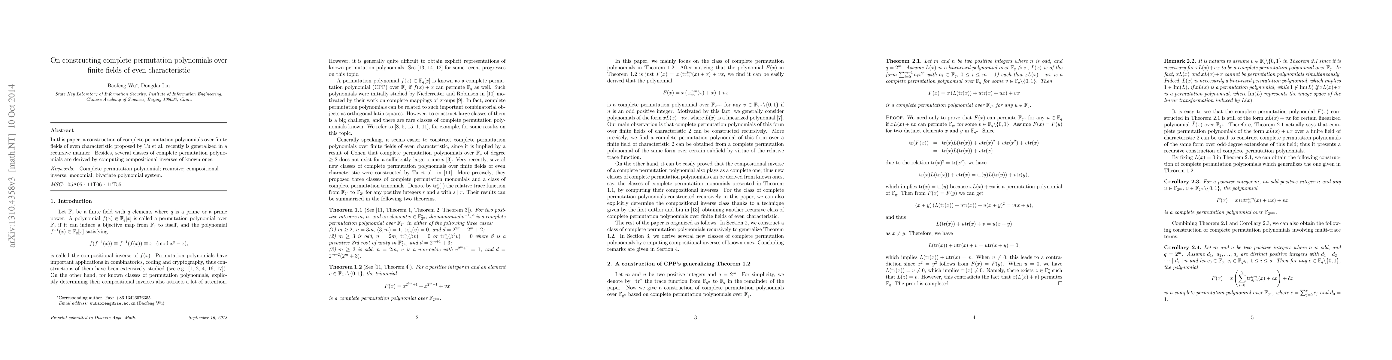 Summary: This paper generalizes the recursive construction of complete permutation polynomials over finite fields of even characteristic, originally proposed by Tu et al. Additionally, it derives several new classes of complete permutation polynomials through the computation of compositional inverses of existing ones.
