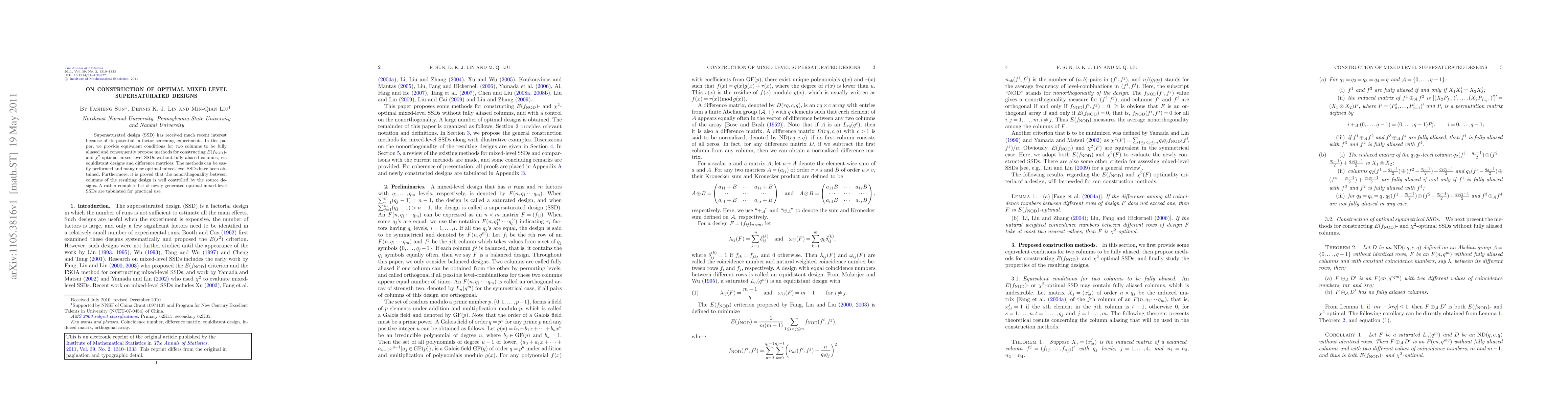 This paper proposes methods for constructing optimal mixed-level supersaturated designs (SSDs) without fully aliased columns, utilizing equidistant designs and difference matrices. It provides a complete list of newly generated optimal designs, ensuring well-controlled nonorthogonality.