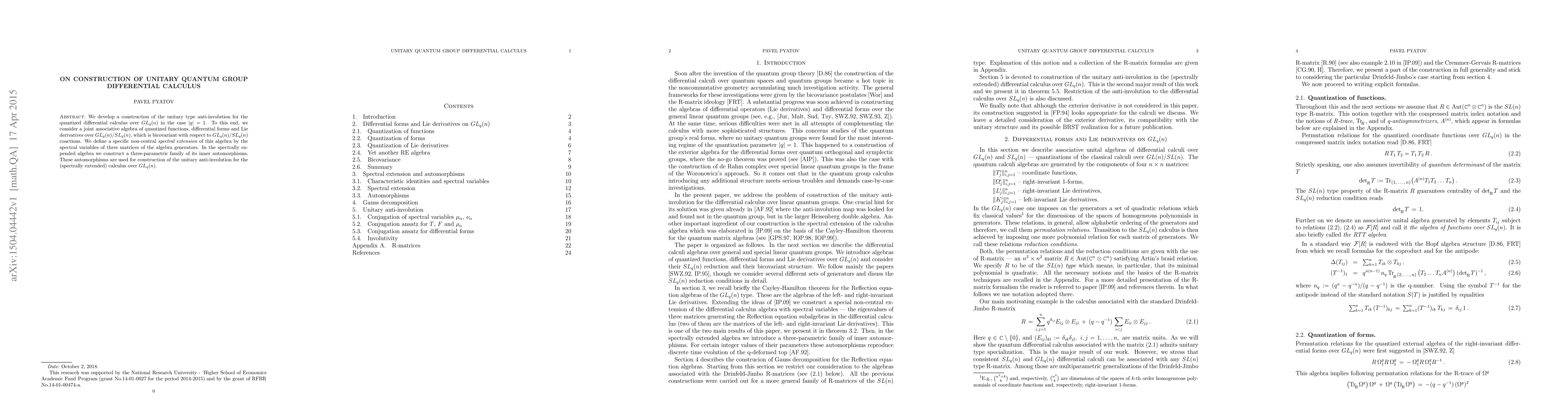This paper constructs a unitary type anti-involution for the quantized differential calculus over $GL_q(n)$ when $|q|=1$. It introduces a bicovariant associative algebra and defines a spectral extension, using inner automorphisms to build the desired anti-involution.
